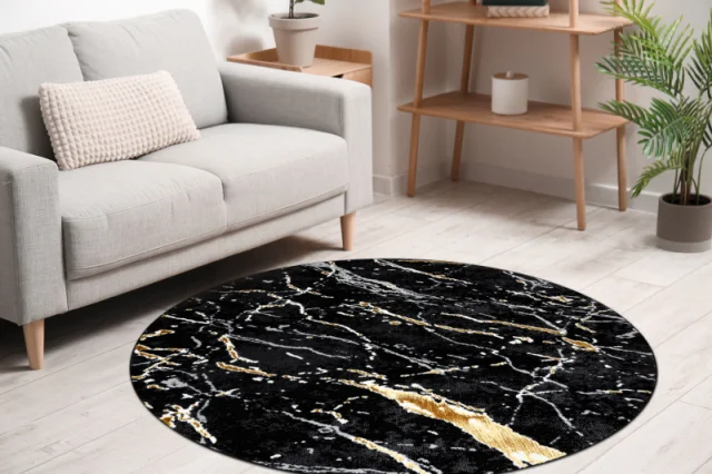 Preproga ALLURE 1963 krog Marmor - strukturna, elegantna, glamur črna / zlato cercle 100 cm