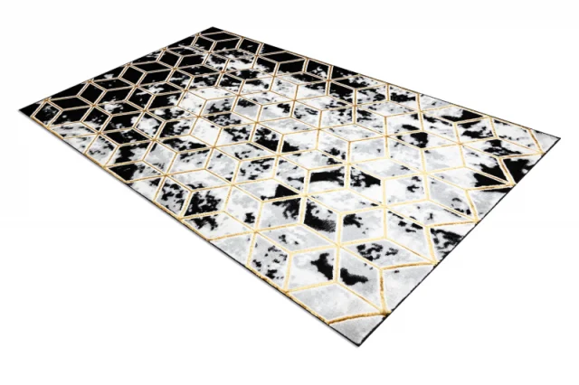 Preproga ALLURE 1966 Cube kocka 3D - strukturna, elegantna, glamur črna / zlato 240x330 cm