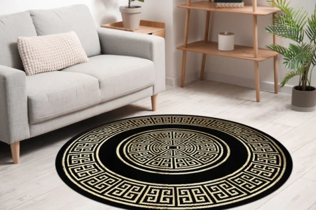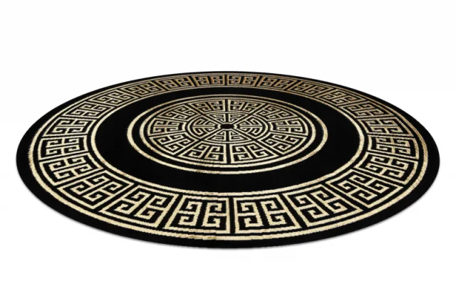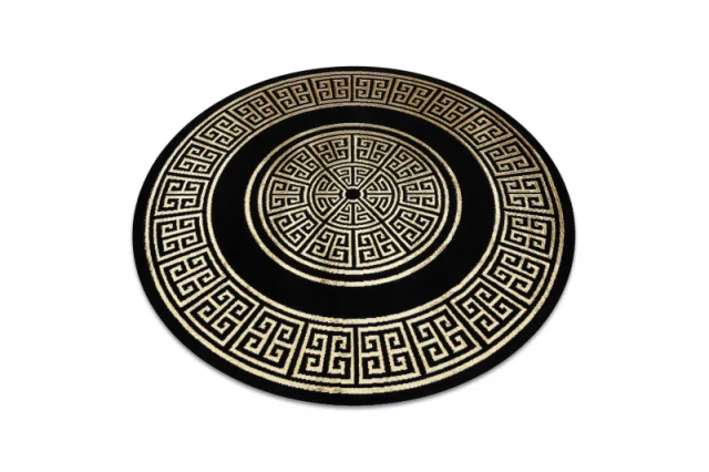 Preproga ALLURE 1968 krog Grški ključ, okvir - strukturna, elegantna, glamur črna / zlato cercle 100 cm