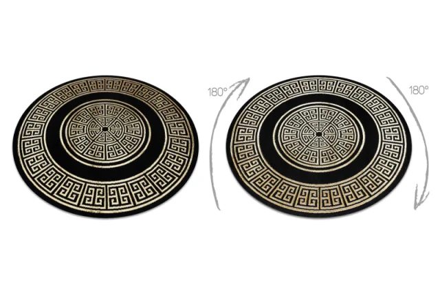 Preproga ALLURE 1968 krog Grški ključ, okvir - strukturna, elegantna, glamur črna / zlato cercle 120 cm