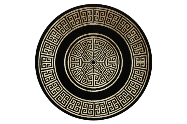 Preproga ALLURE 1968 krog Grški ključ, okvir - strukturna, elegantna, glamur črna / zlato cercle 200 cm