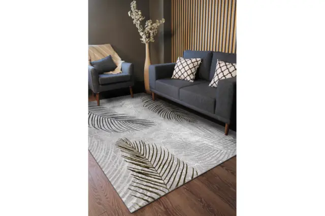 Preproga ALLURE 8752 Palmovi listi - strukturna, elegantna, glamur siva / zlato 160x220 cm