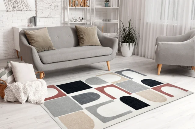 Izdelek izpolnjuje vse varnostne standarde, ki veljajo za oblikovanje notranjosti. Lahko se uporablja na trdih površinah, kot so les, laminat, ploščice in druge talne obloge. Ni starostnih omejitev. Izdelek ni odporen proti ognju. Hranite ga stran od odprtega ognja, kaminov in virov toplote. Priporočljivo je, da pod preprogo postavite drsno podlogo.