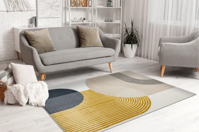 Preproga FUSION 0240 krem / rumena - Geometrična, moderna, abstraktna 140x190 cm