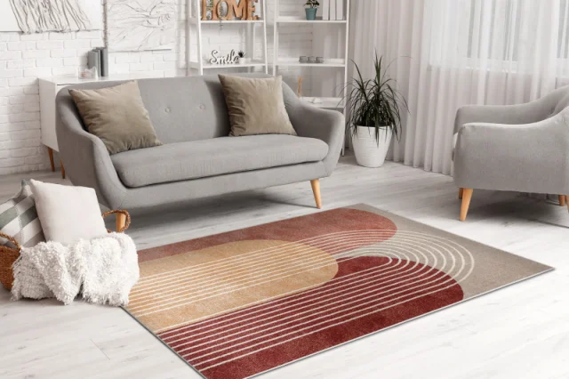 Preproga FUSION 0810 bež / terakota - Geometrična, moderna, abstraktna 160x220 cm