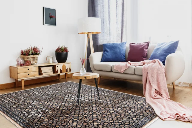 Izdelek izpolnjuje vse varnostne standarde, ki veljajo za oblikovanje notranjosti. Lahko se uporablja na trdih površinah, kot so les, laminat, ploščice in druge talne obloge. Ni starostnih omejitev. Izdelek ni odporen proti ognju. Hranite ga stran od odprtega ognja, kaminov in virov toplote. Priporočljivo je, da pod preprogo postavite drsno podlogo.