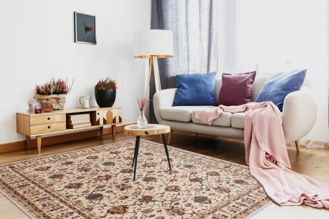 Izdelek izpolnjuje vse varnostne standarde, ki veljajo za oblikovanje notranjosti. Lahko se uporablja na trdih površinah, kot so les, laminat, ploščice in druge talne obloge. Ni starostnih omejitev. Izdelek ni odporen proti ognju. Hranite ga stran od odprtega ognja, kaminov in virov toplote. Priporočljivo je, da pod preprogo postavite drsno podlogo.