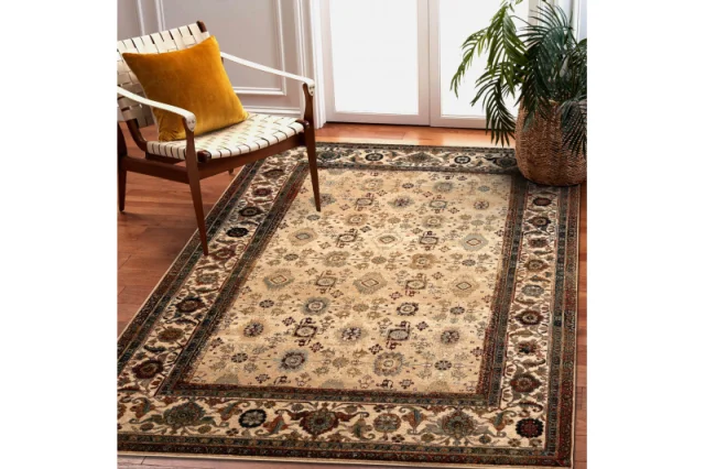 Preproga volna OMEGA AVILA Ornament okvir pesek bež 200x300 cm