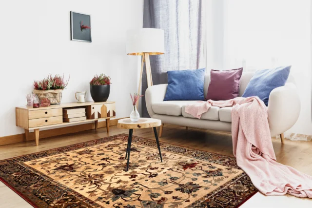 Preproga volna POLONIA BODRUM Ornament, okvir svetlo rubin 200x300 cm