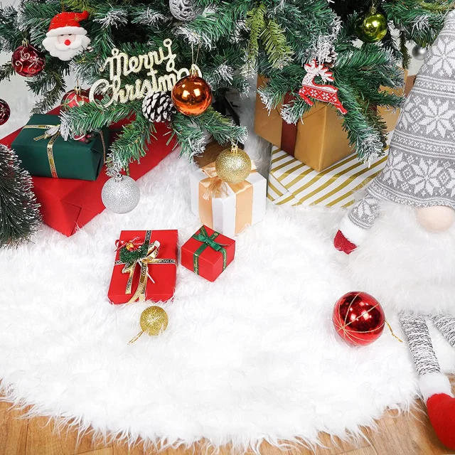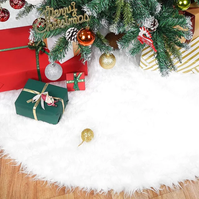 Preproga za božično drevo iz umetnega krzna Bela 78 cm
