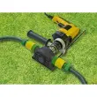 – Priložena hitra spojka ustreza vsem običajnim 13 mm (1/2 palcem) vrtnim cevem in se privije z vpenjalno glavo. Črpalka se priključi v nekaj sekundah in prav tako hitro spet pospravi.