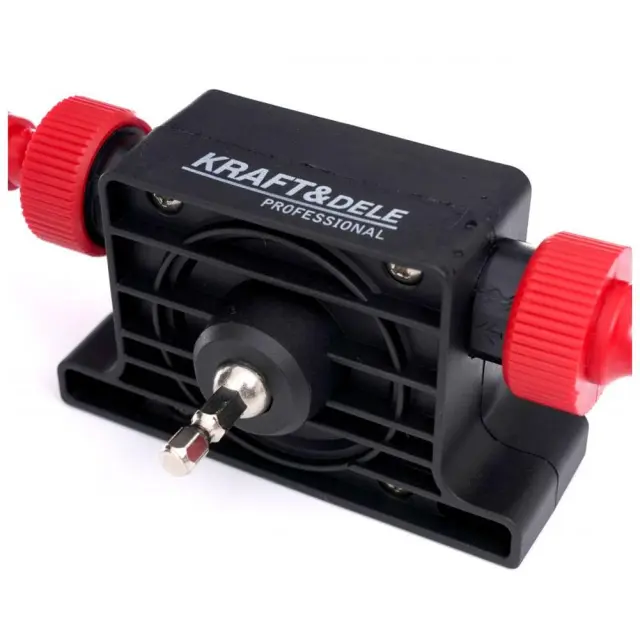 Praktična črpalka za vijačnik je izdelana iz kakovostne plastike. Z lahkoto lahko črpate vodo, gorivo, olje ali druge tekočine. Pogonska gred se prilega v objemko katerega koli izvijača.
