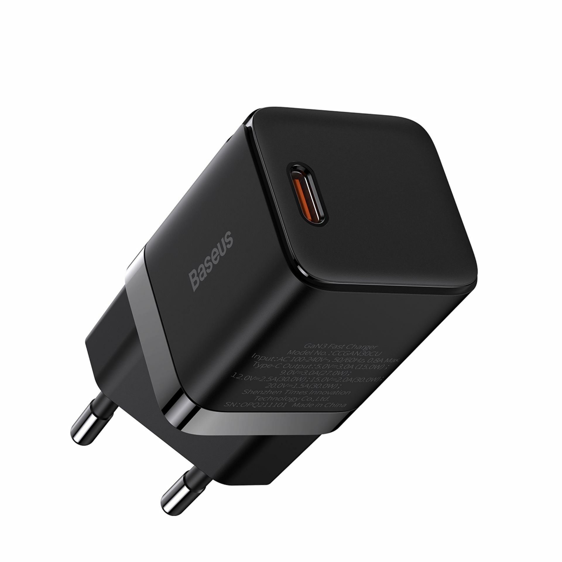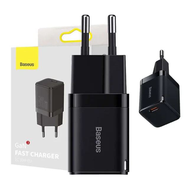 Pretvornik USB - 220V 30W USB Tip C GaN3 Mini Quick Charger črn Baseus