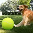 Privlačna igra: Prosimo, upoštevajte: to niso originalni deli. Ta prevelika napihljiva teniška žogica zagotavlja ure privlačne igre za vašega pasjega spremljevalca. Njena precejšnja velikost, približno 24 cm v premeru, je popolnoma primerna za pse srednjih in velikih pasem, spodbuja aktivno igro in vadbo. Svetlo rumena barva zagotavlja visoko vidljivost, tudi v slabih svetlobnih pogojih, zaradi česar je idealna za igre prinašanja na prostem. Napihljiva zasnova ponuja nežnejšo alternativo trdnim gumijastim žogicam, zmanjšuje tveganje za poškodbe zob med intenzivnimi sejami žvečenja in zagotavlja varno in prijetno zabavo za vašega ljubljenega hišnega ljubljenčka.