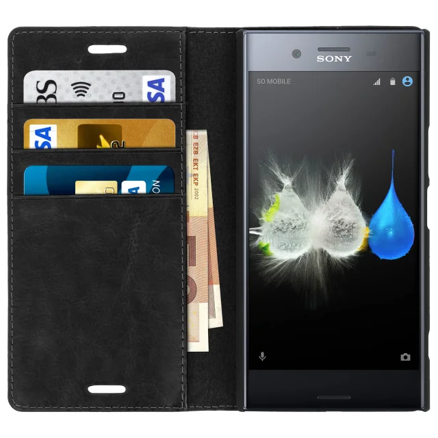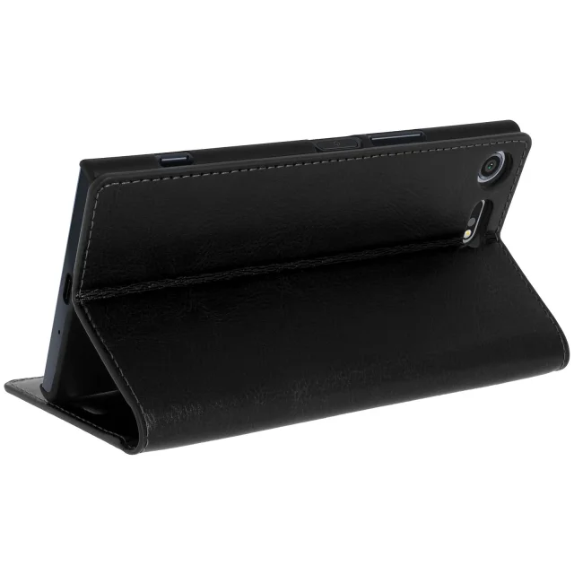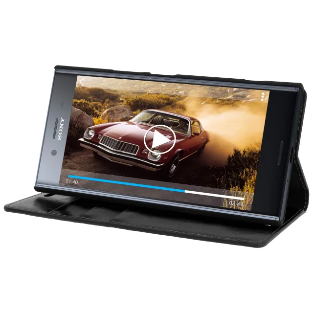 Prevleka iz pravega usnja Sony Xperia XZ Premium Case, stojalo za video, črno