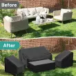 Vodoodporna in vremensko odporna: Zasnovana za vzdržljivost tudi v najtežjih vremenskih razmerah, je ta prevleka za kavč popolnoma vodoodporna in vremensko odporna. Tesno tkano oksfordsko blago ustvarja pregrado pred vlago, ki preprečuje, da bi voda pronicala v blazine in okvir vašega kavča. Ta zaščita podaljšuje življenjsko dobo vašega pohištva in vam prihrani težave s stalnim čiščenjem ali zamenjavo poškodovanih kosov. Uživajte v miru, saj veste, da je vaš kavč varen pred vremenskimi vplivi, ne glede na napoved.
