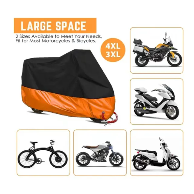 Zaščita pred vremenskimi vplivi: Ta prevleka za motorno kolo zagotavlja zaščito vašega kolesa v vseh vremenskih razmerah. Zasnovan je tako, da je odporen proti dežju, snegu, UV-žarkom in prahu, zato ohranja vaš motocikel čist in suh vse leto.
