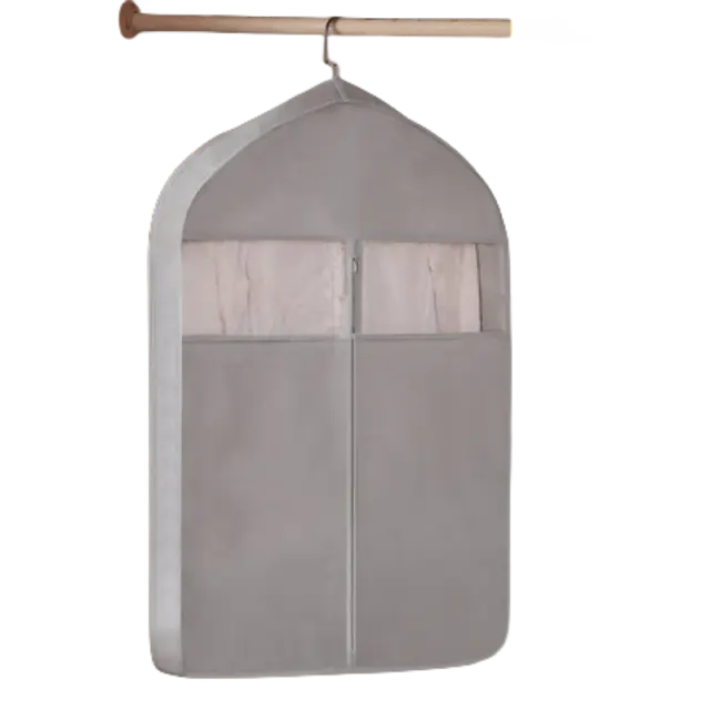 Zasnova za obešanje, ki prihrani prostor: prevleka je zasnovana tako, da jo obesite v vaši omari, s čimer prihranite dragocen prostor v omari, hkrati pa zagotavlja učinkovito zaščito pred prahom za vaše plašče, obleke in druga viseča oblačila.
