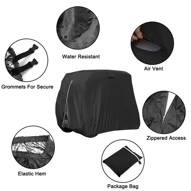 Vrhunska zaščita: Zaščitite svoj voziček za golf pred vremenskimi vplivi z našo vrhunsko prevleko. Izdelana iz visokokakovostne tkanine Oxford, nudi izjemno zaščito pred dežjem, prahom, snegom in soncem. Poskrbite, da bo vaš voziček izgledal najbolje in podaljšajte njegovo življenjsko dobo s preprečevanjem bledenja, pokanja in rje. Ta prevleka zagotavlja, da je vaš voziček za golf vedno pripravljen za vašo naslednjo rundo, ne glede na vremenske razmere. Robusten material je zasnovan tako, da prenese različne okoljske dejavnike, kar zagotavlja celoletno zaščito in brezskrbnost.