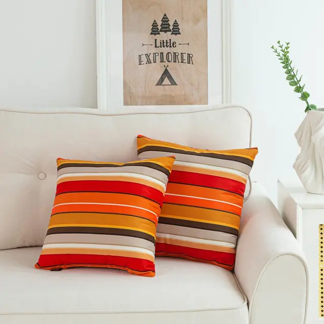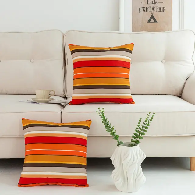 Set dveh dekorativnih prevlek za vzglavnik blagovne znamke Makimoo predstavlja stilen in funkcionalen dodatek, ki v vsak bivalni prostor vnesne svežino ter energijo. Izdelane so iz mehke mikrovlakne, ki zagotavlja prijeten otip in vzdržljivost pri vsakodnevni uporabi v različnih delih doma. Oranžne in rdeče črte ustvarjajo prikupen vzorec, ki se odlično poda k modernim in klasičnim ureditvam interierja, od dnevnih sob do spalnic. Zaradi svoje univerzalne zasnove so te prevleke primerne za namestitev na kavč, posteljo, fotelj ali celo v avtomobil.
