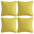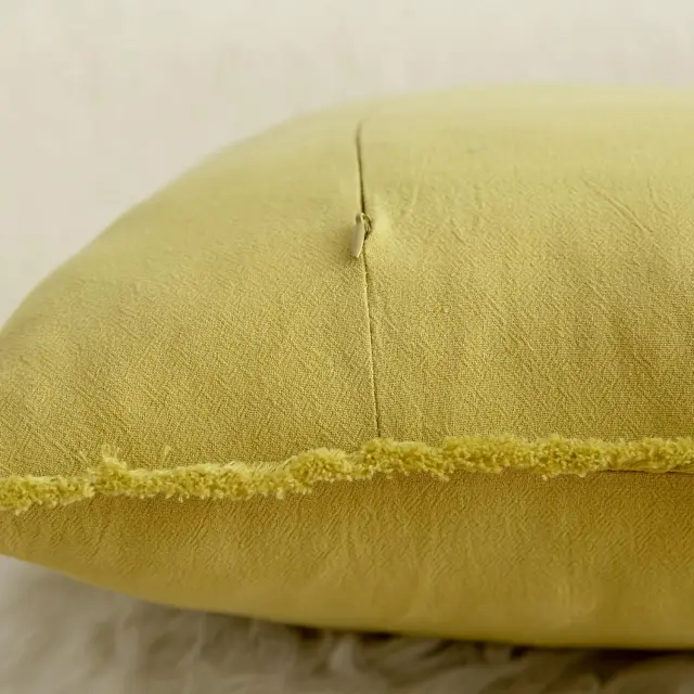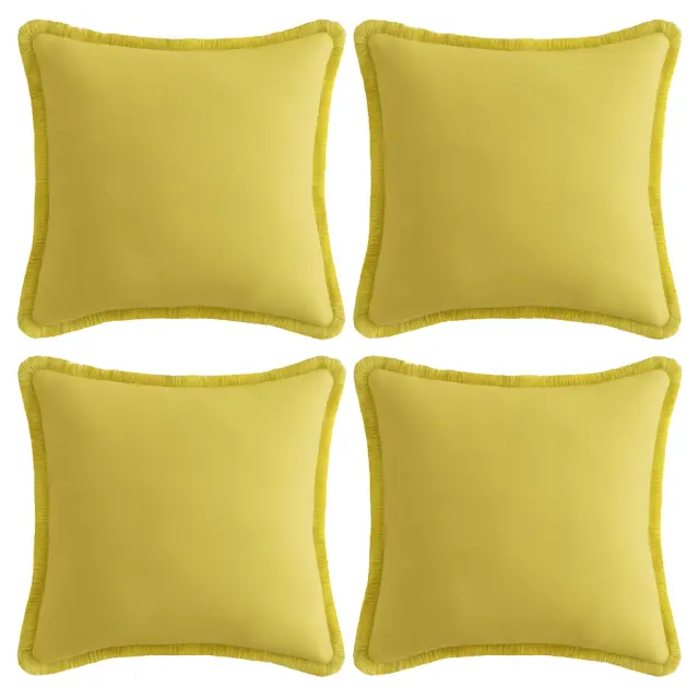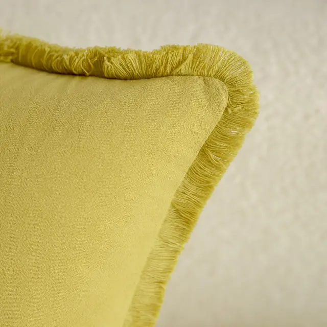 Komplet štirih bombažnih dekorativnih prevlek v rumeni barvi predstavlja idealno rešitev za popestritev bivalnih prostorov in dodajanje osebnega pečata notranji opremi. Izdelane so iz naravnega materiala, ki zagotavlja mehkobo, zračnost in visoko stopnjo udobja pri vsakodnevni uporabi na zofah, posteljah ali foteljih. Zaradi svoje trpežnosti in estetskega videza so prevleke primerne tako za notranje prostore kot tudi za uporabo na pokritih verandah ali vrtovih. Subtilne resice na robovih dodajo izdelku moden boho pridih, ki se harmonično vključi v različne sloge opremljanja, od modernega do klasičnega.
