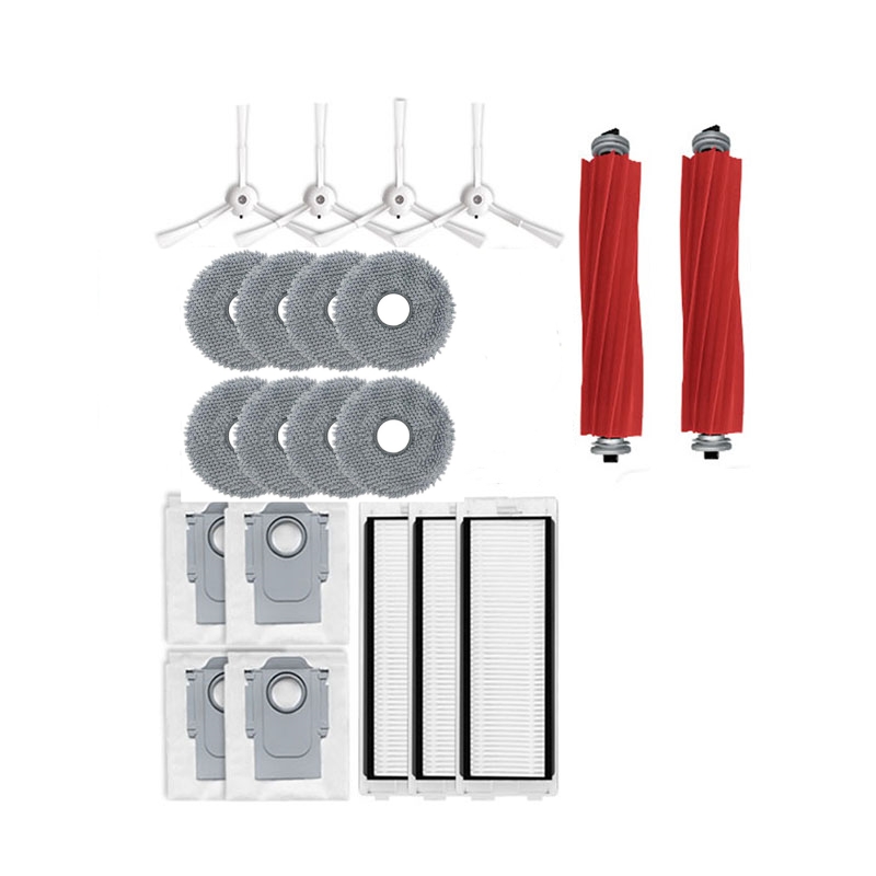 Obsežen komplet dodatne opreme: Ta komplet vključuje glavne krtače, stranske krtače, filtre za sesalnik, vrečke za sesalnik in blazinice za brisanje.