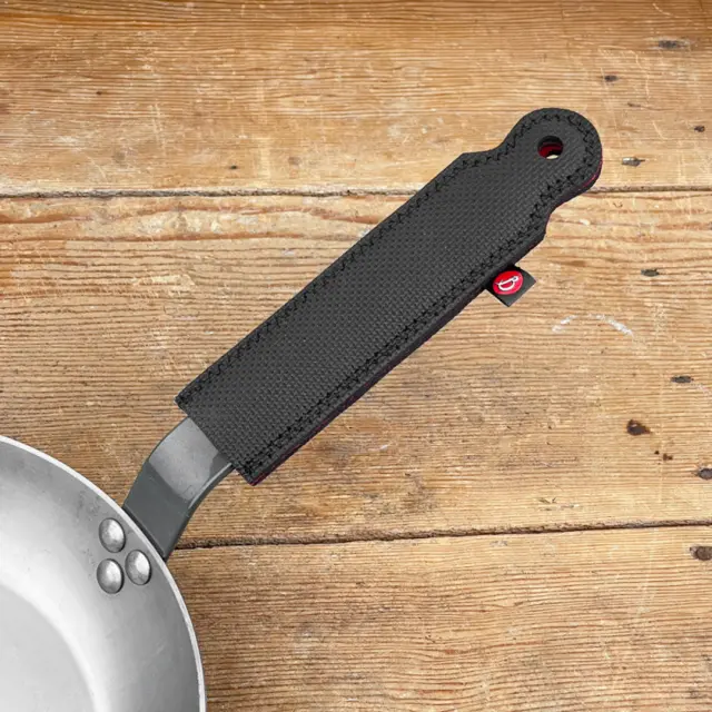 Jeklo je dober toplotni prevodnik in tudi ročaji iz jekla lahko akumulirajo del toplote. Neoprensko termo DRŽALO-PRIJEMALKA DE BUYER se popolnoma prilega ravnemu jeklenemu ročaju De Buyer-jevih ponev iz linije Mineral B, Choc Non-stick, Choc Restro, idr. in omogoča varno rokovanje ter s tem preprečuje morebitne opekline. ? Material: Neopren ? Vzdrževanje: Držalo očistite samo z vodo ali blagim detergentom. Brez strojnega pranja. Brez sušenja v sušilnem stroju. Brez uporabe mehčalca ali belila.