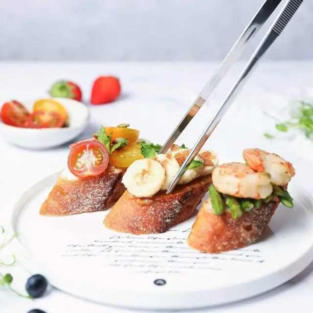 Ravna profesionalna kuhinjska prijemalka oz. pinceta iz linije linije Tutti Xuno, dolžine 20 cm, je izdelana iz nerjavečega jekla. Namenjena je cocktail profesionalcem in vsem kuharskim navdušencem, saj omogoča natančno dekoriranje krožnikov in sladic.