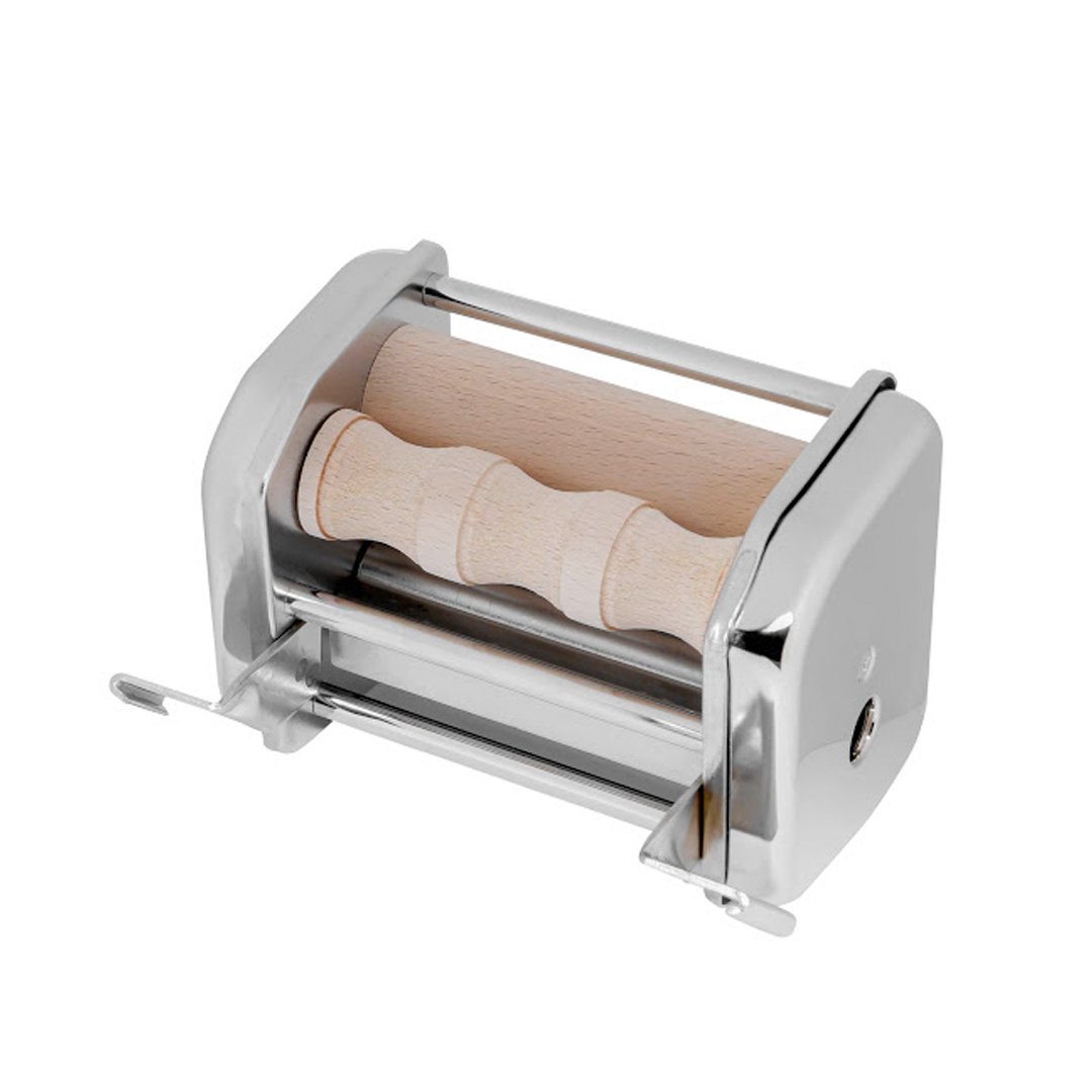 IMPERIA PRILKJUČEK MILLE GNOCCHI je nastavek za strojček za izdelavo testenin Imperia ali Titania. Ohišje iz nerjavečega jekla ter kombinacija jeklenih in lesenih valjev omogočajo pripravo treh različnih testenin.