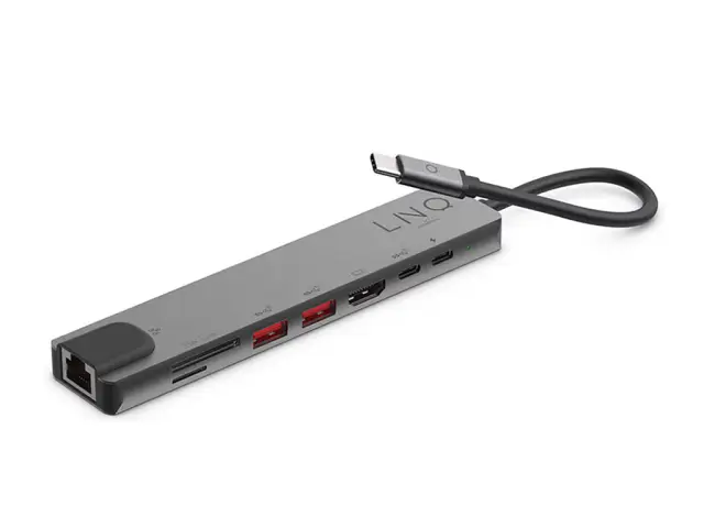 Priključna postaja LINQ 8 in 1, USB-C, RJ45, SD+TF, HDMI 4K, 2x USB-C PD 100W, 2x USB 3.2, LQ48010