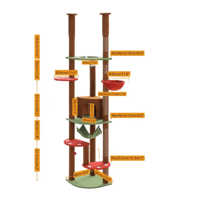 • Trdna in stabilna konstrukcija: Zasnovano z osnovo v obliki ventilatorja in trikotnimi stebri za večjo stabilnost, kar zagotavlja, da lahko vaše mačke varno skačejo in se igrajo brez prevračanja.