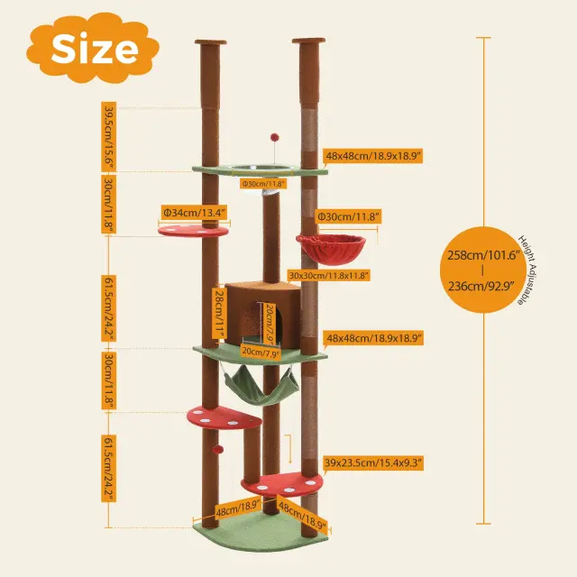 • Prilagodljiva višina za vsestranskost: Višino lahko prilagodite med 236cm in 258cm, kar ga naredi popolnega za različne velikosti prostorov in zagotavlja, da se prilega vaši notranji opremi.