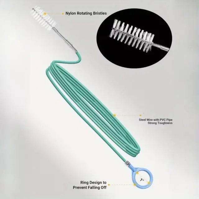 Prilagodljiva 3-metrska krtača se enostavno upogne v ozke odtoke in natančno odstrani umazanijo ter obloge.