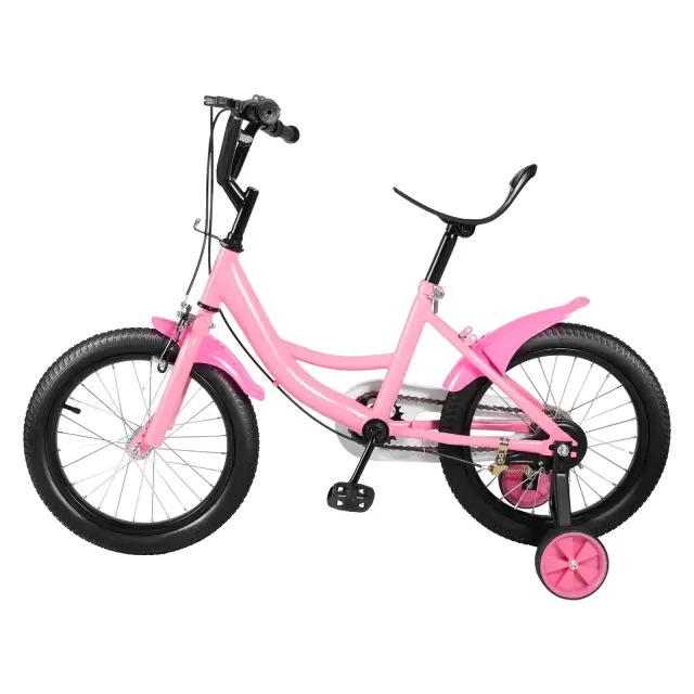 Prilagodljivo roza otroško kolo, 16-palčna kolesa, stabilna pomožna kolesa, Roza