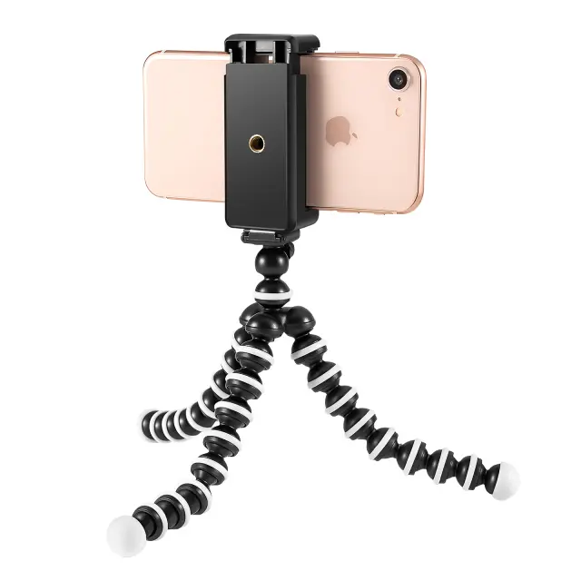 Prilagodljive nedrseče noge, ki se ovijejo okoli predmetov in omogočajo ustvarjalne posnetke. 360-stopinjsko vrtenje krogličnega sklepa za enostavno nastavitev kota glede na uporabo ali vsebino posnetka. Združljiv s pametnimi telefoni z diagonalo od 60 do 85 mm in fotoaparati z mini vijakom 1/4 palca. Kompakten in lahek, idealen za prevoz, potovanje ali vsakodnevno mobilno uporabo.