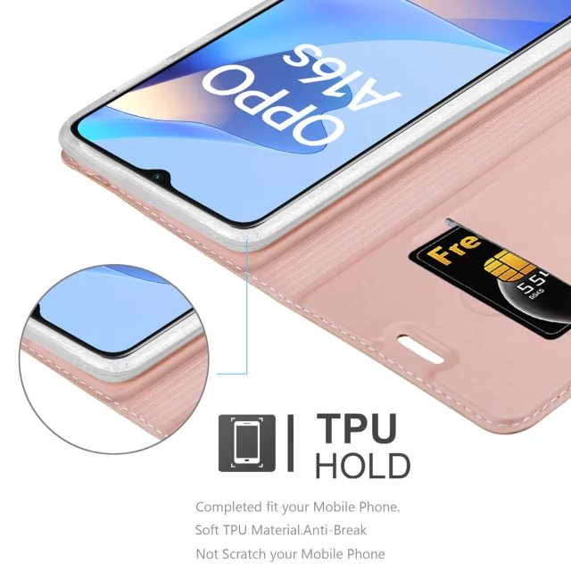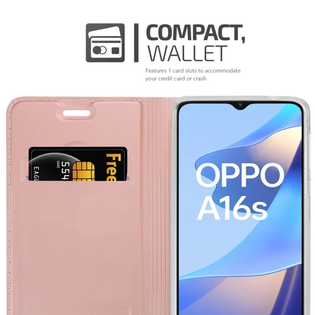 Primer Cadorabo, združljiv z OPPO v elegantnem rosă ‰ Gold - zaščitni pokrov z magnetnim zapiranjem, stoječo funkcijo in režo za kartico
