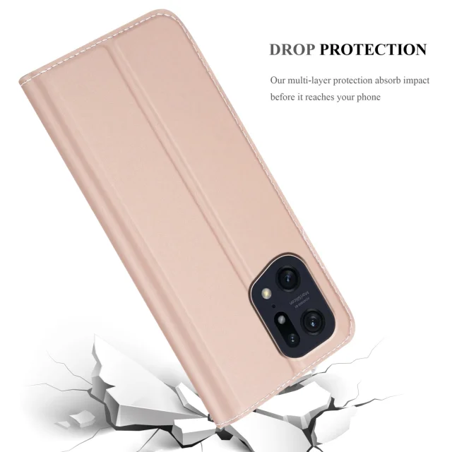 Primer Cadorabo, združljiv z OPPO v elegantnem rosă ‰ Gold - zaščitni pokrov z magnetnim zapiranjem, stoječo funkcijo in režo za kartico