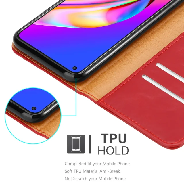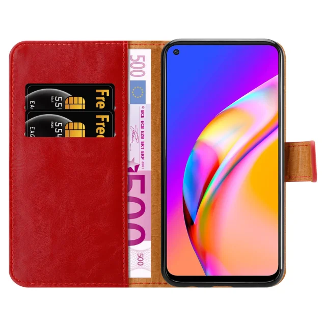 Primer Cadorabo, združljiv z OPPO v rdeči barvi - zaščitni pokrov z magnetnim zapiranjem, stoječo funkcijo in režo za kartico