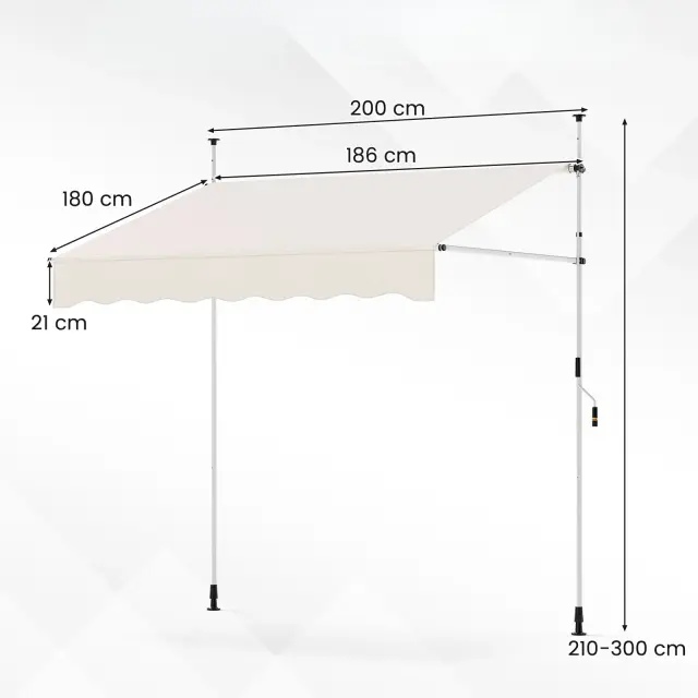 Pripenjanje Balkonska markiza z ročno ročico 200 cm bela