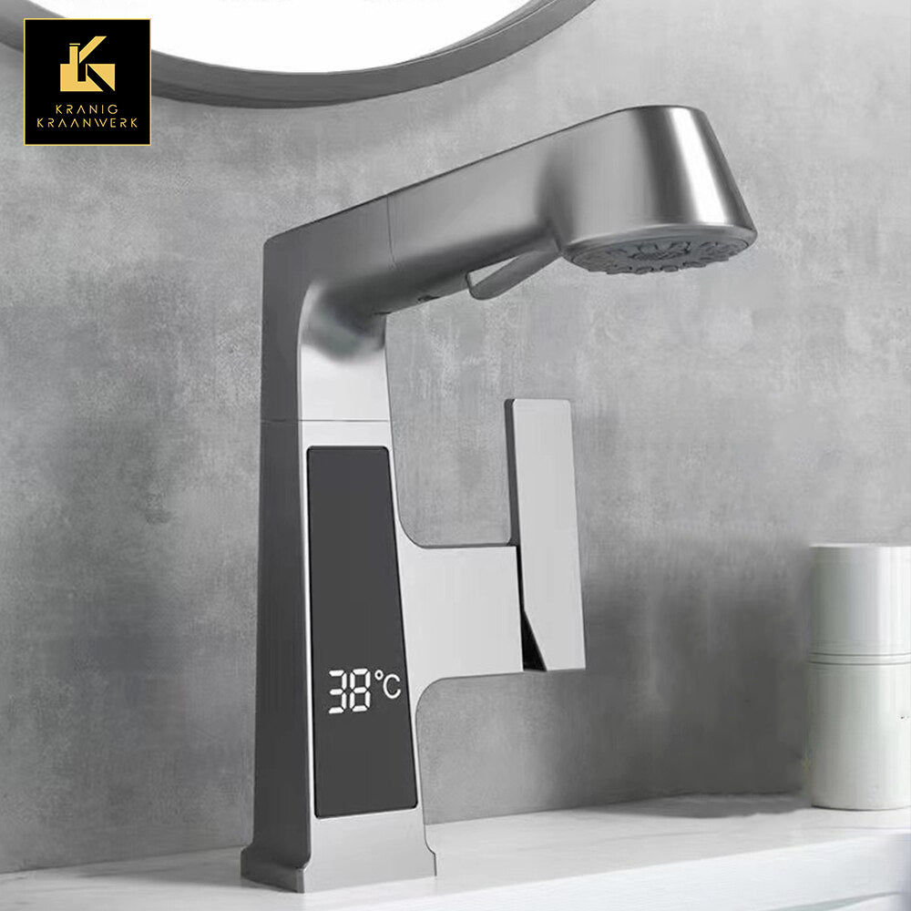 Priročna pipa za kopalnico ali dnevno sobo | Frizerska pipa | Prikaz temperature | Izvlečna cev | Razširljiv | Kim in samo