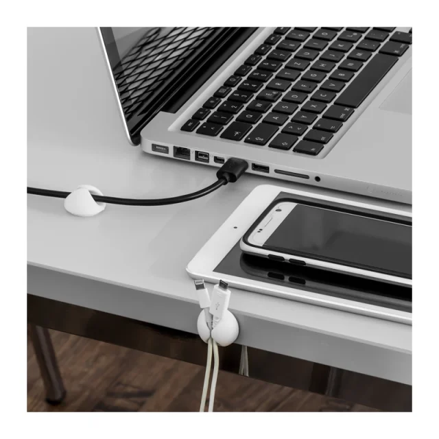 Sponke za razporeditev in ureditev kablov. Lahko se uporablja na armaturni plošči, mizi, itd. Samolepilna, enostavna za pritrditev na katero koli ravno površino.