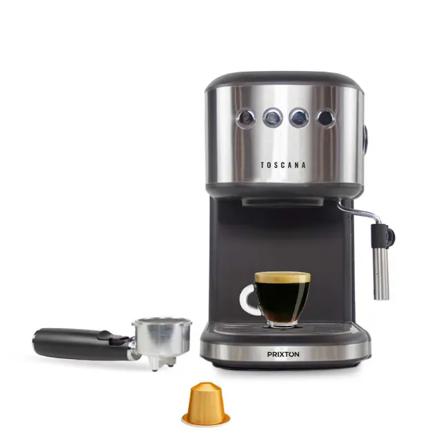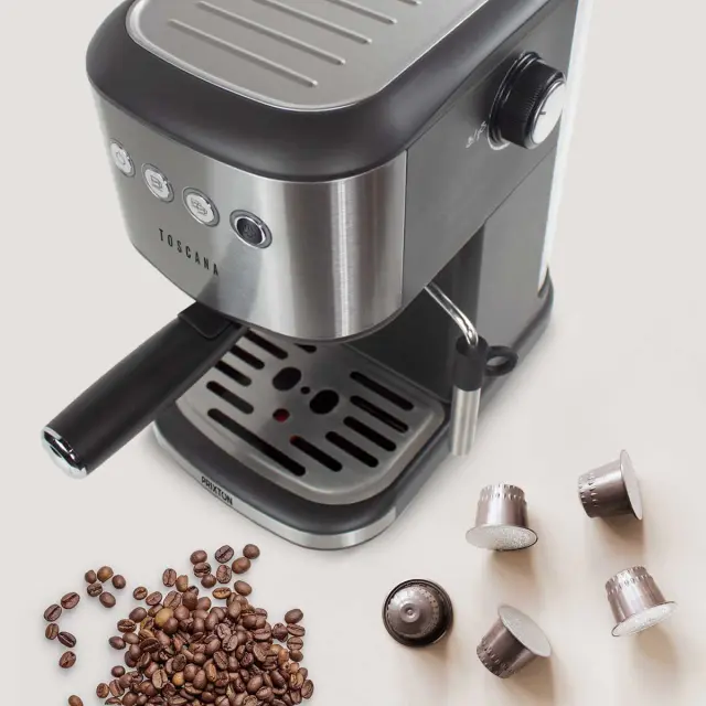 Uživajte v okusni kavi s kavnim aparatom Toscana in italijanskim sistemom s 20 bar pritiska. Popolna izbira za ljubitelje kave.