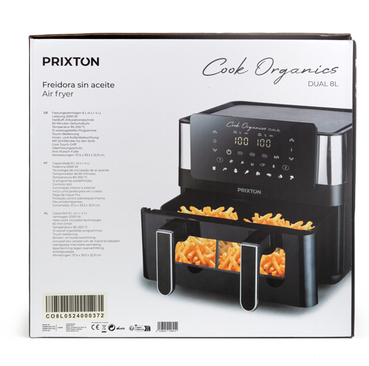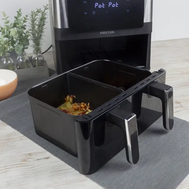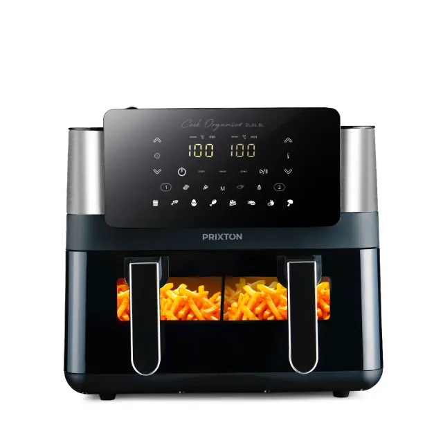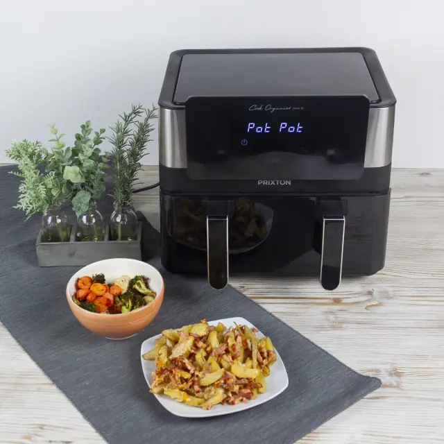 Kuhajte zdrave recepte s cvrtnikom Cook Organics zahvaljujoc tehnologiji vrocega zraka. Cvrtnik omogoca razlicne možnosti, od kuhanja velikih kolicin hrane zahvaljujoc 8-litrskemu košu, do priprave dveh receptov hkrati z uporabo locilnika, ki koš spremeni v dve 4-litrski coni. Poleg tega lahko zaradi okna in notranje osvetlitve nadzorujete stanje kuhanja od zunaj, ne da bi izgubili toploto.