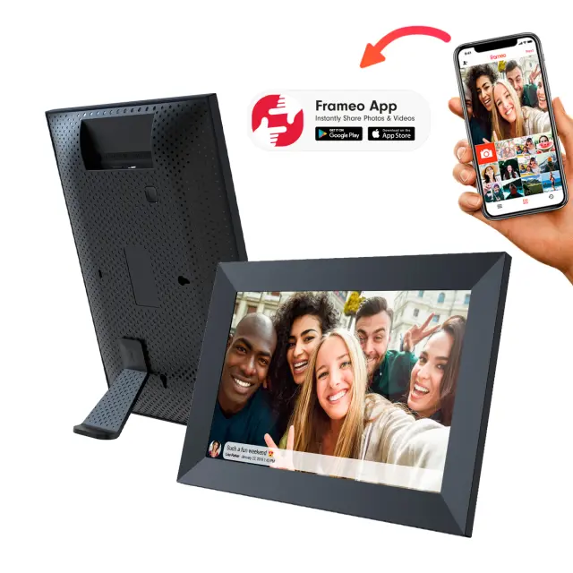 PRIXTON Digitalni fotoalbum Prado HD z WiFi in mobilno aplikacijo, 10,1-palčni zaslon na dotik, 1 GB RAM / 16 GB, črna barva