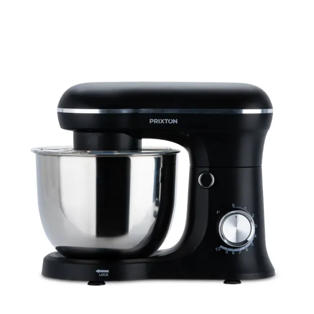 PRIXTON Planetarni Mešalnik KR250, 1500 W, 10 Hitrosti, 5 L Inox Posoda, 3 Nastavki, Prozoren Pokrov, Ćrna