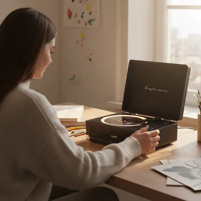 Uživaj v glasbi po svoje, kjerkoli si. Boogie Cream združuje CD predvajalnik in prenosni zvočnik z Bluetooth povezavo, FM radiem in AUX vhodom v praktičnem kovčku s polnilno baterijo – zvok, ki ti bo delal družbo doma, v pisarni ali na poti.