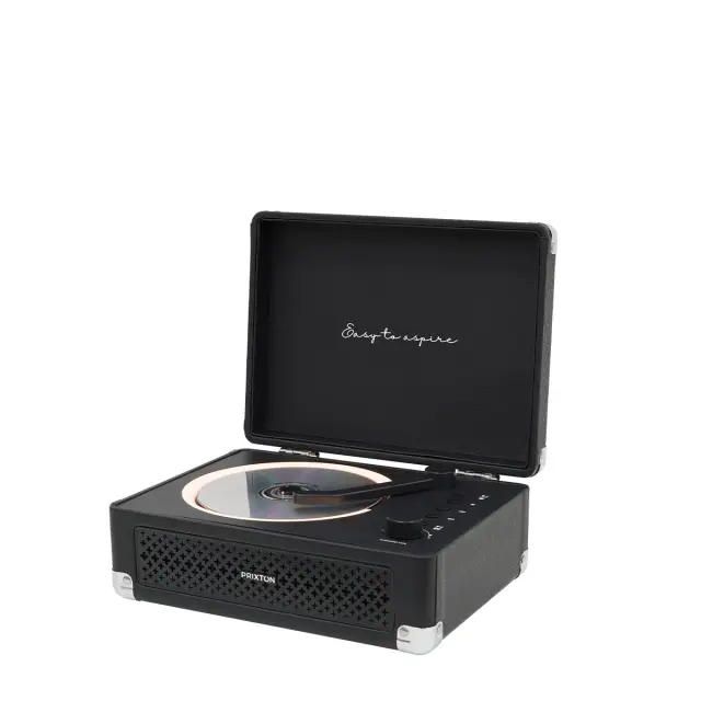 PRIXTON Prenosni CD Predvajalnik Boogie z Bluetoothom, FM Radiem in AUX, Zvočnik 6 W, Združljiv CD/MP3/WMA, Oblika Kovčka, Črna Barva