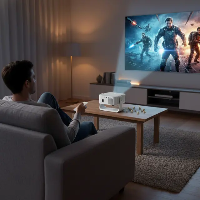 Uživajte v ostri in svetli sliki doma ali kjerkoli želite s tem projektorjem Full HD. S pametnimi funkcijami in popolno povezljivostjo spremeni vsak prostor v vašo osebno kinodvorano.