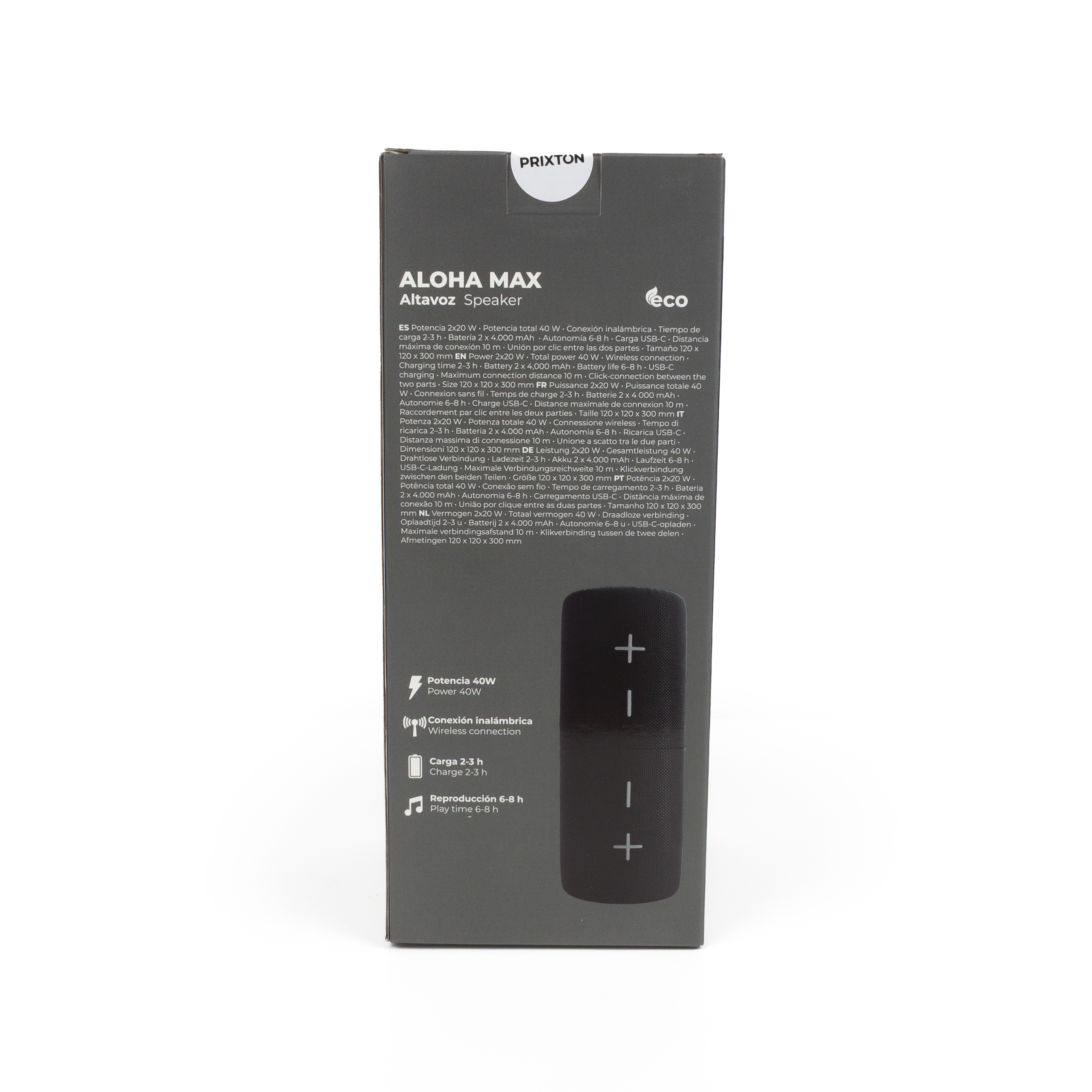 Aloha Max 40W ponuja zmogljiv in prostorski zvok v vsestranskem formatu. Njegov deljiv dizajn omogoca uporabo kot dva samostojna zvocnika ali kot enega, prilagojenega vsakemu okolju.