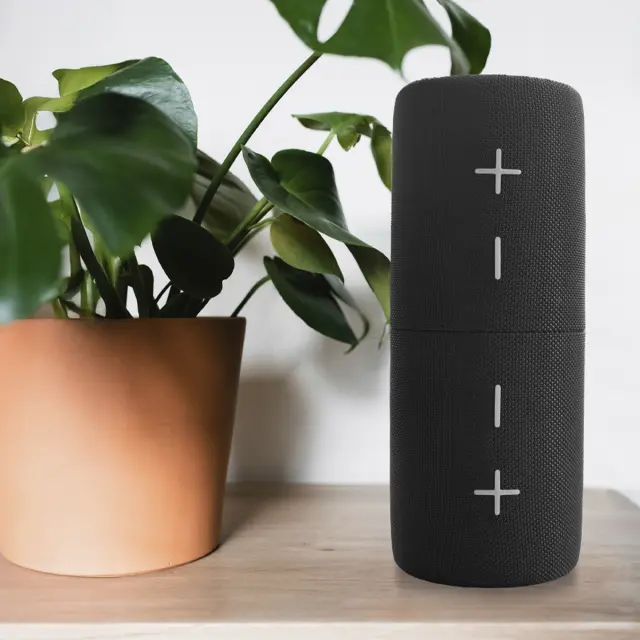 2 v 1 s prostorskim zvokom. Enostavno se razdeli na dve polovici s klik sistemom za uporabo loceno ali skupaj s skupno mocjo 40 W.